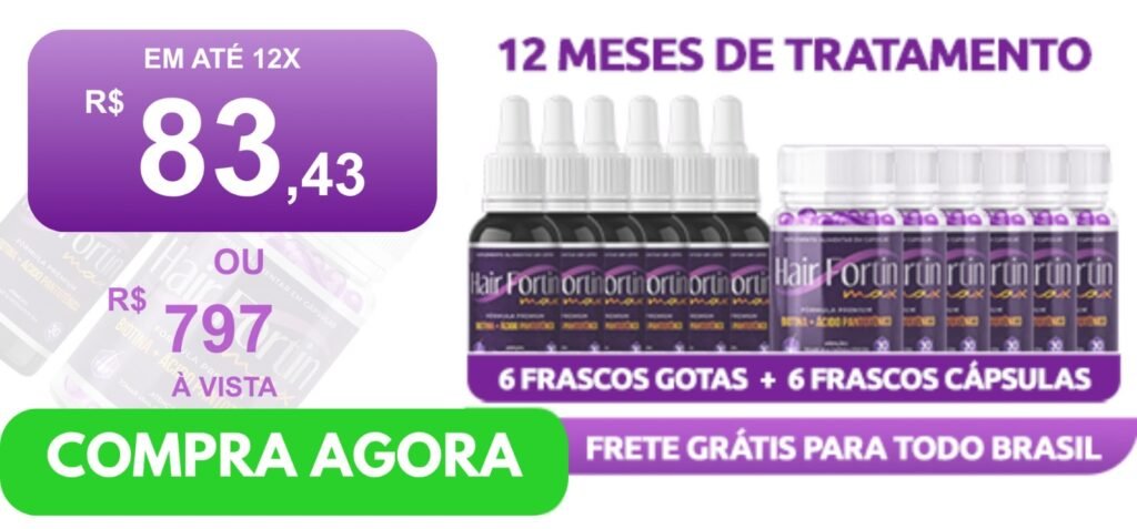 A fórmula avançada de Hair Fortin Max te devolve a saúde e beleza dos seus cabelos. Agora você não precisa sofrer para ter cabelos mais fortes, longos e brilhantes.
